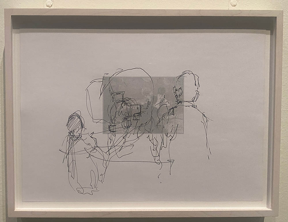 Elle a consigné ce qu’elle voyait, entendait et remarquait : des bribes de conversations, des postures corporelles, des vêtements, des moments de friction ou de pause. Sous le regard attentif de cette artiste se déploie un état des lieux précieux pour comprendre la vie au sein du musée avant que des aménagements d’ampleur n’améliorent la circulation.