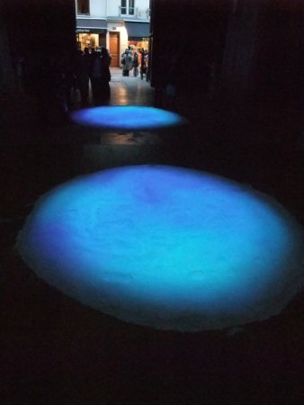 Le ludique et le sérieux se conjuguent immédiatement. Et chacun fait de ces disques un théâtre imaginaire, seul, à deux ou à plusieurs. L’œuvre offre au spectateur une interactivité avec une technologie minimale, un flux de lumière vidéo. N’a-t-on pas vu un défilé de mariage le traverser, après avoir tracé un chemin en son milieu avec un balai. Cette œuvre est donc malléable par chacun dans les faits et les têtes.