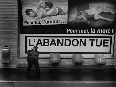 VS : Les injonctions commerciales ou « citoyennes » qui polluent plus qu’elles ne fleurissent nos murs me semblent de plus en plus déconnectées de la réalité de ceux qui les regardent ou les subissent. Elles semblent fonctionner dans une logique propre qui n’est plus celle de la rue et encore moins celle des individus. La consommation infinie qui est leur soubassement et leur nécessité se heurte aux limites flagrantes des pouvoirs d’achat. L’économie redouble donc d’efforts et d’impératives exhortations pour nous maintenir dans une humeur dépensière. Du coup le contraste entre le monde auquel on voudrait nous faire adhérer et notre réalité intérieure devient de plus en plus criant.