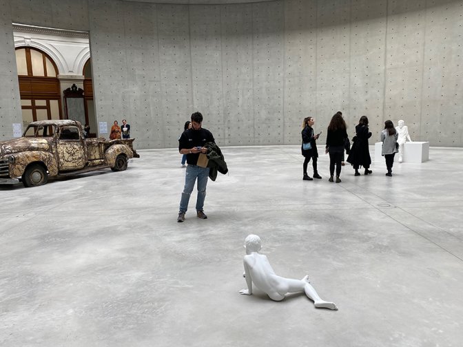 Avec trois œuvres seulement dans l’immense rotonde, Charles Ray montre comment sa sculpture « crée de l’espace ».