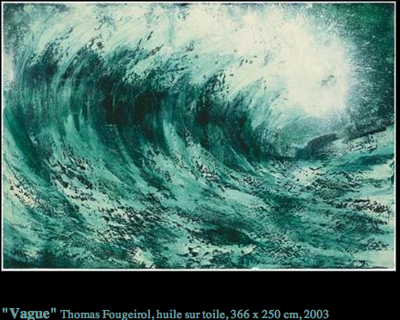 L’eau, la vague : magnifique peinture d’eau qui traduit peut-être la force qui traverse l’artiste quand il peint (lire dossier .pdf joint). Mais depuis, la couleur a laissé place au noir et blanc. Une autre forme d’absence peut-être ?
