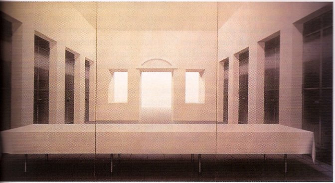 Ben Willikens, La Cène, 1976-1979, 300 X 200 cm, acrylique sur toile, (chaque panneau), Francfort-sur-le-Main, musée allemand de l’Architecture TDR