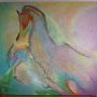 Cette artiste dont la lignée familiale traverse toute l’Afrique de l’Ouest a adopté la fusion des genres, en reprenant les techniques du sfumato de la Renaissance et l’esprit de l’abstraction. Des teintes sourdes elle a évolué vers des tonalités claires quasi impressionnistes sur de grandes toiles. L’élégance et certains thèmes (enfantement, gynécée, etc.) laissent poindre une approche plus spécifiquement féminine.