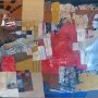 « Sur la première face (face A, ci-dessous) de mon objet, dans la partie supérieure, j’ai incorporé deux masques en pâte à papier. Le plus grand, en haut, est presque abstrait, tandis que l’autre se caractérise par ses cheveux en forme de feuilles sèches. Ces deux masques aux visages sans vie renvoient à l’idée de l’absence, l’idée du vide, dans le sens de la mort. La deuxième face (face B, ci-dessous) apparaît plus mouvementée : trois masques, en pâte à papier et en carton, semblent se disputer la primauté. C’est le monde des vivants, la société traditionnelle aussi bien que moderne où certains commandent et d’autres subissent toujours la loi des plus forts. »