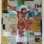 « La croix en Noir et Blanc et en couleur », un grand Christ de 2m de haut exprime sa conception de l’assemblage : une natte en support, un collage de titres du journal La Croix en fond et le Christ a des traits africains : la question raciale est ainsi abordée et questionnée, comme le titre l’indique. Cette œuvre s’inscrit dans un mouvement personnel de révolte, issu de la guerre d’Irak en 92 et qui a abouti chez lui à la production de Christs souvent très originaux.