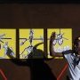 « Donne-moi une raison de rester » est un triptyque significatif avec ses traits noirs sur fond jaune éclatant, très africains, à la fois étranges et familiers par une connivence avec de la BD ou du street art. On est loin des teintes sourdes des précurseurs, mais les saynètes à la Youssouf Bath s’y trouvent et l’esprit maintient une grande part de mystère que les explications de l’artiste lèvent peu.