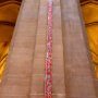 En face de son triptyque, l’artiste avait installé une œuvre subtile faite de minuscules tableaux rouges qui alignés l’un en dessous de l’autre traçait une incision dans le pilier : " La langue de la parole"