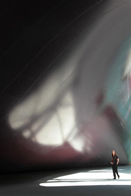 A l’extérieur le silence est plus grand encore malgré les qualités terriblement sonores du lieu. La tête renversée on déambule sous les formidables cuisses de la bête, on se sent infime, sans prise, petit porteur de vie devant un gigantesque ovule, on touche, on heurte, on caresse, on n’a qu’une envie : rentrer à nouveau dedans, faire partie de ce tout. (Valérie Simonnet)