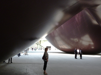 À l’intérieur, Anish Kapoor suggère l’illimité. À l’extérieur, la forme est limitée et pourtant on ne peut la voir entièrement ! Entre infini et fini le spectateur ne peut que chercher sa propre échelle.