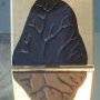 Nativité est une taloche de maçonnerie recouverte d’or sur laquelle se dessine une silhouette de peinture noire au motif arborescent. La forme obtenue et son relief sont nés de la séparation de deux surfaces « amoureuses » entre lesquelles s’est divisée de façon symétrique la matière acrylique. L’outil alter ego est supprimé et ne reste que la taloche marquée par le geste. C’est un objet industriel brut en bois et plastique extrait de son contexte - proche du ready made - choisi d’une part pour sa triangularité qui évoque l’icône et d’autre part pour son rapport utilitaire du geste à la surface. En effet, Thomas Tronel-Gauthier revisite ici le rituel fondateur du maçon servant à édifier.