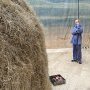 Pour trouver une réponse, on peut errer avec les autres visiteurs et, le samedi, côtoyer de curieux personnages habillés de vêtements de bure colorés. On découvre, Ô surprise, que ce sont les acteurs non professionnels du film situé en fin d’exposition. On se croirait presque dans le film de Woody Allen, La Rose pourpre du Caire, lorsque l’acteur du film en noir et blanc sort de l’écran et rejoint le monde réel en couleur.