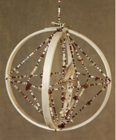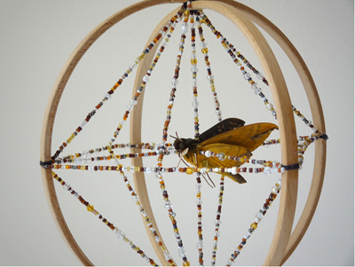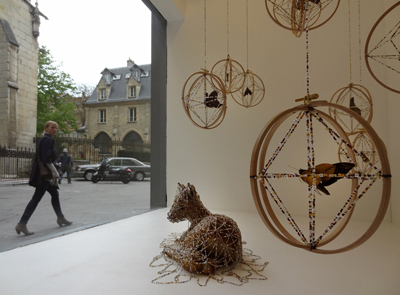 La vitrine de la Galerie Saint Séverin accueille des « pièges à rêves » formés de cadres à broder en osier, au centre desquels se trouvent un papillon (comme dans les vanités) et des perles chatoyantes comme des étoiles.