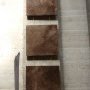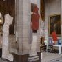 – quelques petits tableaux toujours faits de vêtements mais très sombres, accrochés sur les piliers, contrastent avec la blancheur de la pierre.