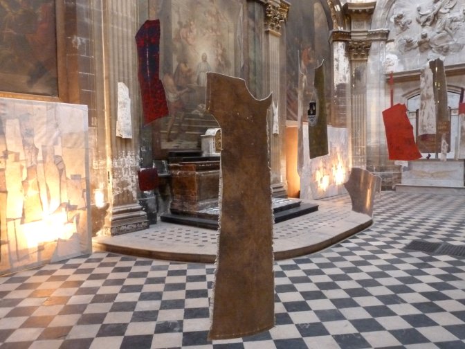 Pour Saint-Merry, elle opère une transfiguration d’un espace très difficile pour les artistes, une vaste chapelle rococo, éclairée uniquement par des lanterneaux la lumière étant brutale en juin.