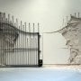 Vivant et travaillant à Mumbai, Shilpa Gupta (née en 1976) est une artiste indienne qui prend comme objet ce qui sépare, les frontières et les clivages ethno-religieux tout comme les structures de surveillance. Son approche conceptuelle donne des œuvres impressionnantes comme aux Giardini, cette grille de résidence surveillée ( Untitled 2009 )s’ouvrant et se refermant sur un mur aveugle en le détruisant progressivement : les grilles faites pour se protéger détruisent de fait ceux qui habitent derrière.