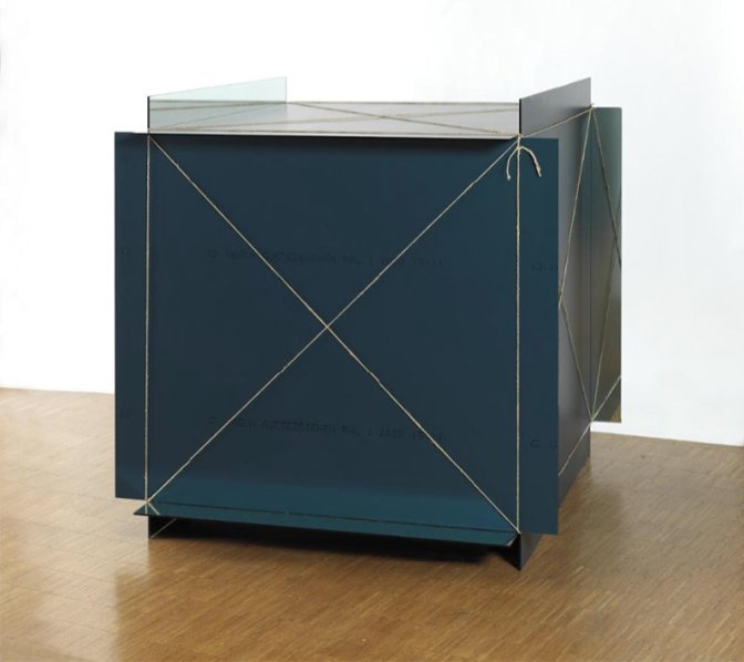 [2] L’œuvre est un ensemble de 6 miroirs assemblés par des cordes avec une extrême précision. La face réfléchissante de chacun est orientée vers l’intérieur et reflète à l’infini ce qui est à l’intérieur. Ici l’air et l’absence de matière, à l’infini.