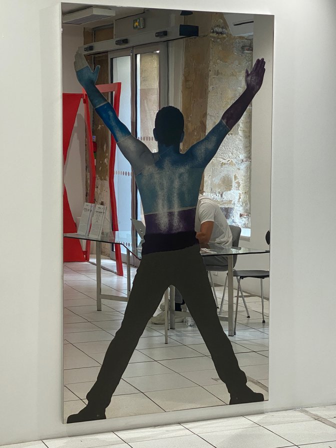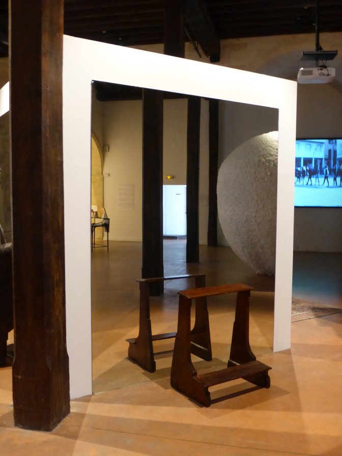 Il a traduit cette posture de manière radicale en 2014 à Arles en disposant devant quatre miroirs des symboles des quatre grandes religions. Pour le catholicisme, c’était un prie-Dieu où le visiteur se voyait à genoux et donc invité à se prier lui-même !
