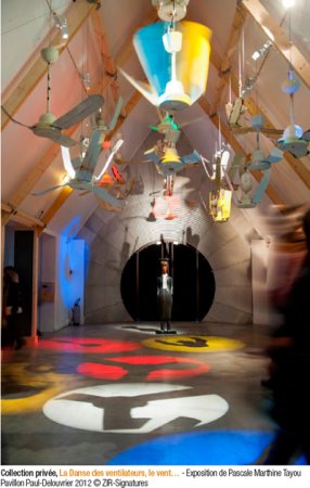 « La danse des ventilateurs, le vent… » est étrangement poétique avec ses palles cabossées de toutes les couleurs. Une revisitation des mobiles de Calder, après un passage par les puces.