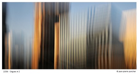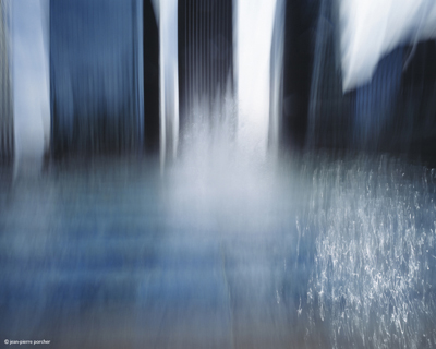 De cette l’architecture moderne triomphale construite en 40 ans, afin de signifier la force du monde des grandes sociétés, Jean-Pierre Porcher nous livre une vision pictorialiste réellement nouvelle et faite de mouvements totalement maîtrisés de l’objectif ou de jeu sur le grain de la photo lors du tirage. Si son pictorialisme le rapproche de la peinture, c’est de l’abstraction lyrique à la Hartung, celle des années 70 et 80 où le peintre utilise un nombre limité de couleurs claires.