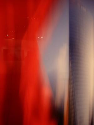 Cette œuvre photographique mêle deux univers, le fluide et l’immobile. Les tours de La Défense sont clairement reconnaissables, mais elles sont saisies par le mouvement de caméra spécifique de l’artiste. Elles semblent bouger.