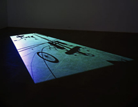 L’exposition se concluait par « 1st sight », une projection vidéo à même le sol de Paul Chan, montrant des hommes chutant du ciel, tandis que, au contraire, les objets du quotidien y remontaient. Cette œuvre onirique ressemblait à une peinture de sable par la forme et traitait avec pessimisme à la fois du politique et du religieux. Elle questionnait le visiteur : le spirituel ayant été abandonné, le monde matériel serait-il devenu le cœur de notre croyance ? L’esprit du mandala était proche, car implicitement l’artiste lançait un appel à réinverser nos valeurs, à nous changer.