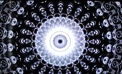 L’œuvre utilisait les facultés hypnotiques de cette géométrie, amplifiée par la technique, et se donnait pour finalité de créer une faille spatio-temporelle. Ce type de visuel veut projeter le visiteur dans une autre dimension. C’est en fait une œuvre savante réactivant le projet d’un architecte et poète visionnaire occultiste, Claude Bragdon (1866-1946). L’époque bouillonnait alors de théosophie, d’occultisme grâce aux recherches de Madame Bravasky, la personne qui, au XIXe siècle, avait fait connaître le bouddhisme à l’Occident et dont les écrits avaient profondément influencé Kandinsky, Klee et Mondrian dans leur recherche de spiritualité, ainsi d’ailleurs que le psychanalyste Jung après sa rupture avec Freud.