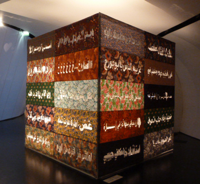 Si l’art contemporain occidental réexplore périodiquement les thèmes du religieux, il semble que les artistes de l’exposition ne les aient pas quittés ; la question du spirituel n’est pas que latente, elle est ouvertement présente. Mais au lieu d’une pensée traitant du fondamentalisme ou revendiquant une approche de la modernité critique, on y découvre des approches sensibles intéressantes ou esthétiquement fortes, mais « politiquement correctes ». Avec « Magnetism », le Saoudien Ahmad Mater aborde la réalité de l’attraction mentale exercés par la Kaaba à La Mecque à l’aide d’un aimant cubique noir et de la limaille de fer prenant alors diverses formes : la gravitation universelle physique pour dire celle du pôle spirituel de l’islam.