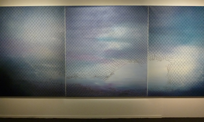 Le climat de violence sociale et imaginaire est une marque de cette exposition, même si elle emprunte à d’autres désignations artistiques que chez les artistes occidentaux. Il y a bien là une spécificité, jusques et y compris ce désir de libération comme ce triptyque (ô combien religieux occidental) d’un ciel où le premier plan est fait de grillages déchirés, comme à Guantanamo.