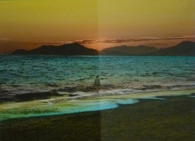 La présence soufie se remarque avec ces grandes photos d’un voile tournant sur lui-même mais c’est dans un ensemble de quatre photos N&B colorées à la main avec des tons saturés et représentant un homme entrant progressivement dans la mer jusqu’à y disparaître que l’on touche de manière émouvante à l’universel : le passage du temps et la mort.