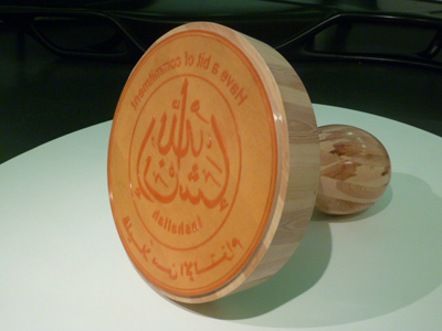 Elle n’est pas frontale mais, pour l’IMA institution très officielle, se veut amusante et légère. Elle a le mérite d’exister. Le summun est donné par l’immense tampon de Abdulnasser Gharem (Arabie Saoudite) où il est inscrit « Inch’Allah, engagez-vous un peu plus de rigueur intellectuelle, soyez plus brave, ayez davantage foi en vos convictions » exprimant le délire bureaucratique de l’Arabie saoudite. En s’affirme comme sa propre autorité, le plasticien fait une profession de foi moderniste.