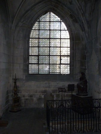 Les vitraux laissent passer la lumière au service de la couleur et d’œuvres composées avec des morceaux de verre. Symboliquement, la lumière vient de Dieu, d’en haut, de l’extérieur et éclaire les fidèles réunis pour prier. Ici, la perspective est détournée : la lumière vient de l’intérieur et éclaire l’extérieur, le monde. C’est ainsi que le projet initial de Camille Goujon devait être vu de la rue avoisinante, ce qui n’a pas pu « voir le jour » pour des questions techniques… Mais une autre symbolique est introduite : la lumière (l’appareil vidéo) vient de la splendide chaire du XVIIIe, qui était le lieu de la parole ! La parole d’une artiste sur les textes évangéliques s’exprime sur un vitrail particulier : une toile de cinéma reprenant la forme exacte des fenêtres de l’église, la modernité épousant alors la tradition.