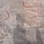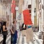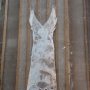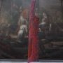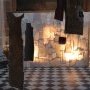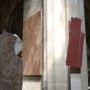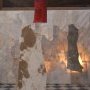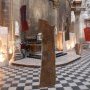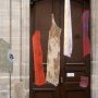 – quelques petits tableaux toujours faits de vêtements mais très sombres, accrochés sur les piliers, contrastent avec la blancheur de la pierre.