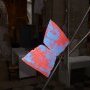 « Plasticienne chiffonnière », Cécile Borne présente des assemblages de tissus, simplement amidonnés ou collés sur des morceaux de plexiglas, qu’elle a trouvés sur le bord la mer. Des blouses de travail, une veste de garçon boucher, un pantalon de sage femme, une combinaison en dentelle, un pantalon d’enfant sont les matériaux d’une œuvre qu’elle installe en tenant compte des lieux.