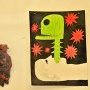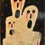 L’hybride, comme expression et méthode de pensée, est partout présent et surtout dans ce petit fantôme rouge sang, bras écartés comme le « Cristo Redentor » de Rio, mais revêtu à l’image d’un héros de la série Barbapapa, ou encore un épouvantail dont les pieds prennent racines comme l’Isaïe du retable de Grünewald ou chez Garouste. Entre le souvenir d’enfance, la symbolique religieuse, l’esprit spirite, le jeu visuel, le sens hésite, les artistes s’échappent.