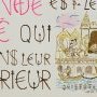 Une simple phrase dessinée dans un curieux alphabet, concret et symbolique : « Le but de l’art est de figurer le sens caché des choses et non point leur apparence… » Splendide de la part d’un grand artiste de 88 ans ! Jusqu’au 30-11. Saint-Séverin