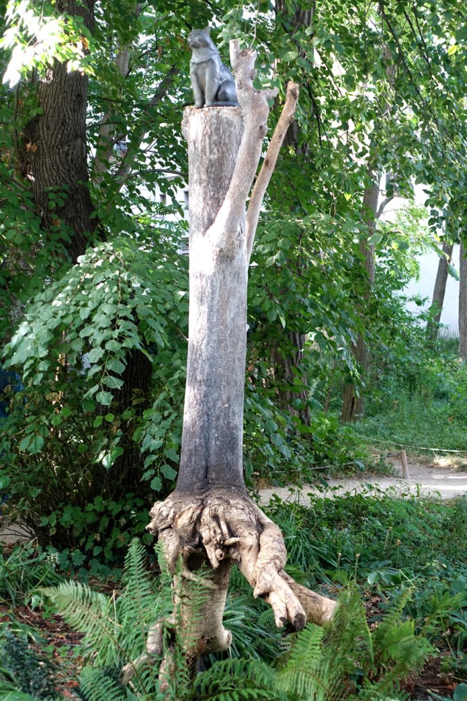 À l’extérieur, le parcours proposé habituellement dans le jardin trouve tout son sens avec ses cartels apposés sur les 24 arbres, dont le Cèdre du Liban planté par Chateaubriand. Ces arbres prennent ainsi le statut d’œuvres d’art vivantes tout en coexistant avec des œuvres commandées par la Fondation.