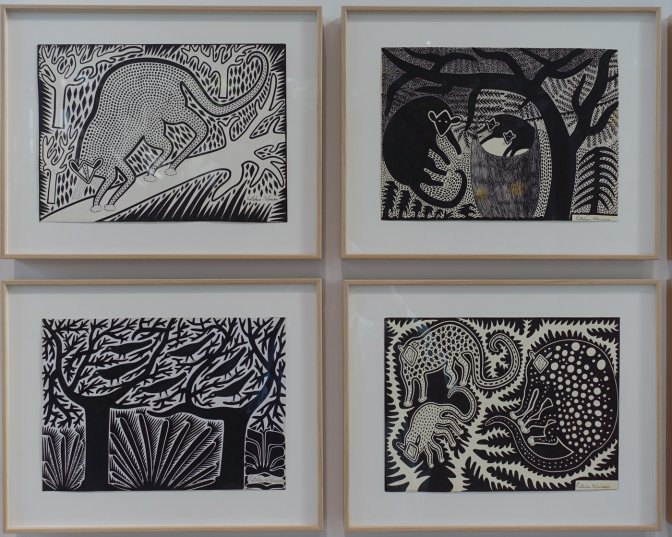 En contraste, les dessins de trois artistes yanomami, ces habitants de la forêt paraguayenne, autochtones possédant un grand savoir, développent à la fois leur cosmologie animiste, leur peur de voir leur milieu détruit par les agissements de l’industrie agro-alimentaire soutenue par les puissances politiques, dont l’actuel président du Brésil est le représentant le plus caricatural.