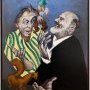 : la situation des personnages, les multiples symboles, les animaux et les lieux, le mélange des époques, la variété des tailles des tableaux, et bien sûr les manières de peindre qui tiennent du classique, du figuratif, de l’abstraction. L’étrangeté est levée par le film qui conclut l’expo : celle-ci est le résultat du débat contradictoire, appelé H’avrouta, mené durant trois ans par le peintre avec son maître et ami, le philosophe Marc-Alain Ouaknin, autour des textes de l’auteur thèque.