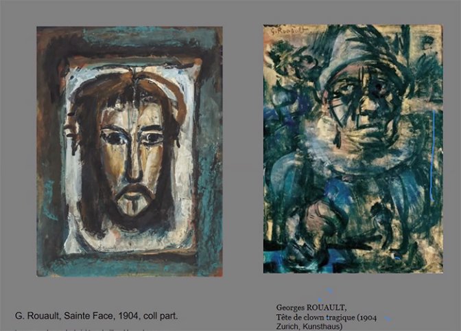 [2] Photo suivante extraite de la conférence en ligne d’ Isabelle Saint-Martin « Sainte Face et visages du Christ dans l’art du XXe siècle », donnée au Collège des Bernardins le jeudi 10 février 2022