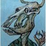 Dans ce sillage, l’artiste peignit en 2014, après l’invasion de la Crimée, le tableau d’un squelette de Minotaure habillé d’un costume en tissu militaire (voir Portfolio). Cette figure a les traits de certaines de ses caricatures de Poutine et correspond bien à l’image initiale du mythe, celle d’un monstre vorace, mais déjà promis à l’anéantissement.