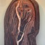 Après le début du conflit armé, le 24 février 2022, l’artiste choisit de rester à Kiev, et commence une série d’œuvres dédiées à la guerre. La plupart sont consacrées à des attaques précises dans des lieux : Bucha, Marioupol, Kherson, Vinnytsia. D’octobre à décembre 2022, sous les raids aériens, Zhyvotkov travaille sur une série de reliefs intitulés « Tocsin ». Sous forme de cloches, les trois stèles présentées ici sont sculptées et peintes dans le bois et le marbre montrant des visages marqués par le traumatisme des affrontements.