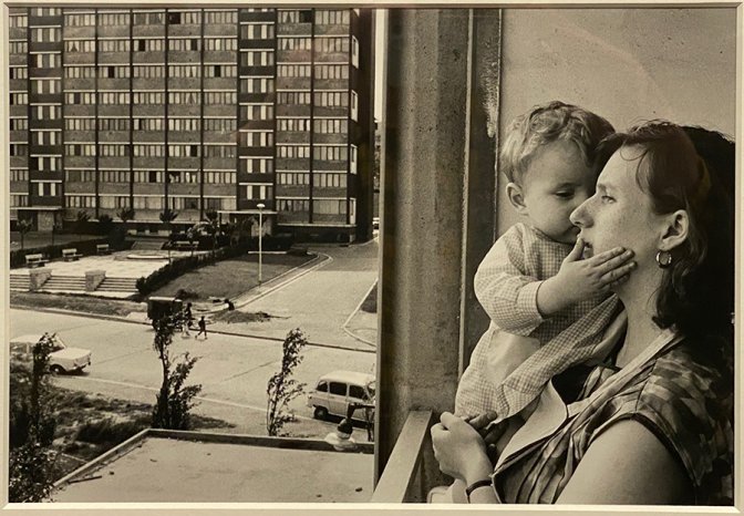 « Celle de Janine Niépce qui représente une femme avec un enfant qui lui met le doigt sur la bouche en 1965. Elle regarde ailleurs. A l’extérieur, c’est une barre d’immeuble et en bas, des voitures. On a l’impression qu’elle regarde sa vie. C’est à la fois une image d’amour, de tendresse, mais en même temps de possession, car l’enfant possède vraiment sa mère. Elle n’est pas « piégée » mais c’est aussi une image d’enfermement. »