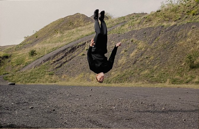 Jean-Michel André Série “À bout de souffle“ ? Résident des Hauts-de-France depuis 2013, Jean-Michel André s’intéresse à la patrimonialisation et à la transition environnementale menées dans le Bassin minier, et a fait le portrait portraits des enfants et petits-enfants de mineurs, habitants des cités minières, exilés aux vingt-neuf nationalités. Voltige sur le terril 101, dit Lavoir de Drocourt, situé à Hénin-Beaumont. Prise de vue réalisée avec Thibaut Jorion, sportif pratiquant les arts martiaux mixtes à Avion.