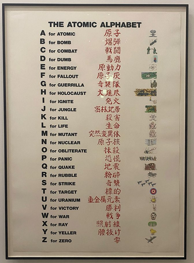 [1] Les artistes : Kenneth Adam, Horst Ademeit, Ant Farm, Francis Bacon, Enrico Baj, Robert Barry, Hélène de Beauvoir, Charles Bittinger, Erik Boulatov, Chris Burden, Alberto Burri, Miriam Cahn, Valdis Celms, Julian Charrière, Bruce Conner, Gregory Corso, Salvador Dali, Gianni Dova, Marcel Duchamp, Friedrich Dürrenmatt, Jaan Elken, Bonita Ely, Lucio Fontana, Loïe Fuller, General Idea, Guy Debord, Vidya Gastaldon, Dominique Gonzalez-Foerster, Hans Grundig, Brion Gysin, Richard Hamilton, Isao Hashimoto, Raoul Hausmann, Shigeo Hayashi, Inārs Helmūts, Justino Herrera, Hessie, « Hibakusha » (les survivants de la bombe atomique), Hi-Red Center, Gary Hill, Jessie Homer French, Pierre Huyghe, Tatsuo Ikeda, Isidore Isou, Motoharu Jōnouchi, Asger Jorn, Jugnet + Clairet, Vassily Kandinsky, Kikuji Kawada, On Kawara, György Kemény, Yves Klein, Hilma af Klint, Susanne Kriemann, Barbara Kruger, Tetsumi Kudo, Yayoi Kusama, Wifredo Lam, Mikhaïl Larionov, Jean-Jacques Lebel, Le Corbusier, Francesco Lo Savio, Piero Manzoni, Yoshito Matsushige, Roberto Matta, Herbert Matter, Gustav Metzger, Boris Mikhaïlov, László Moholy-Nagy, Henry Moore, Minoru Nakahara, Natsuyuki Nakanishi, Jürgen Nefzger, Barnett Newman, Natacha Nisic, Isamu Noguchi, Yoko Ono, Kiyoji Otsuji, Wolfgang Paalen, Eduardo Paolozzi, Claude Parent, Gaetano Pesce, Raymond Pettibon, Otto Piene, Giuseppe Pinot Gallizio, Sigmar Polke, André et Jean Polak, Jackson Pollock, Richard Pousette-Dart, Grant Powers, Margaret Raspé, Nathalie Rebholz, Stefan Rinck, Thomas Schütte, Jim Shaw, Vladimir Shevchenko, Kazuo Shiraga, Mimi Smith, Amy Sillman, Sisters Of Survival, Nancy Spero, Viatcheslav Syssoev, Atsuko Tanaka, Koichi Tateishi, Diana Thater, Shōmei Tōmatsu, Hiromi Tsuchida, Luc Tuymans, Peter Watkins, Ray Wisniewski, Wols, Yōsuke Yamahata, Vladimir Yankilevsky, Alexander Zhitomirsky, etc.