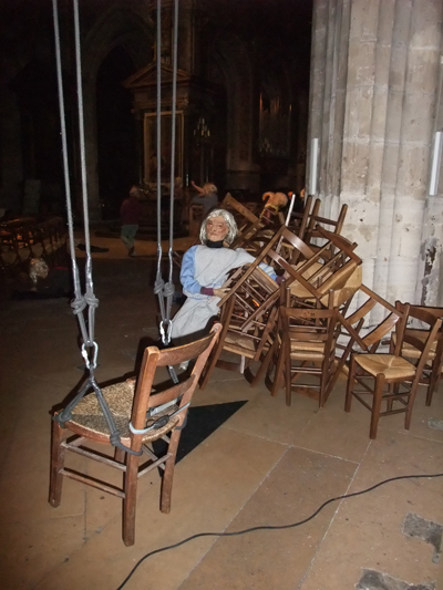 Rarement une église a été « habitée » de la sorte ! et il ne s’agit pas de savoir si les personnages ou le théâtre sont de telle ou telle école dans le domaine des arts plastiques…