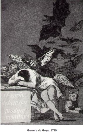 Avec l’époque des Lumières, les artistes s’engagent, Goya par exemple avec « Le sommeil de la Raison engendre des monstres » ; ils dénoncent par leurs œuvres les irrationalités, les pouvoirs absolus.