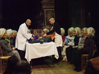 En laissant libre une chaise, l’artiste a souhaité aussi que des visiteurs puissent d’asseoir "à la place du Christ", ouvrant par la sorte à une éventuelle méditation sur ce que veut dire partager. C’est donc selon ses termes, une "installation interactive".