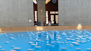 La rotonde de la Bourse de Commerce-Fondation Pinault est un espace artistique où tout semble possible. Avec Clinamen, un projet immersif, aquatique et musical, l’émotion et la rêverie fusionnent le temps de l’été 2025. Céleste Boursier-Mougenot amplifie la taille de ses projets antérieurs, pour le bonheur de tous, en dépit d’une conjoncture déprimante en interne et inquiétante à l’extérieur. Une bulle de paix et une occasion de méditation, en dépit du bruit ambiant provoqué par la foule.