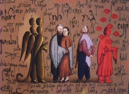 L’homme rouge avec des yeux. L’acquisition de la vision, c’est-à-dire de la sagesse dans la lecture de la Torah. Dans ce cas, le rouge signifie la dévotion à Dieu, au Dieu d’amour et de sagesse.