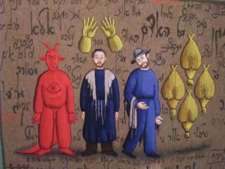 L’homme à la corde. L’homme est semblable à une corde, dont Dieu tire un côté et Satan l’autre ; c’est Dieu qui gagne à la fin. La corde renvoie aussi à celle préparée pour Aman et ses dix fils qui avait tiré au sort la date d’extermination des juifs (Livre d’Esther)et qui est commémoré à Pourim (« Pour » = sort).